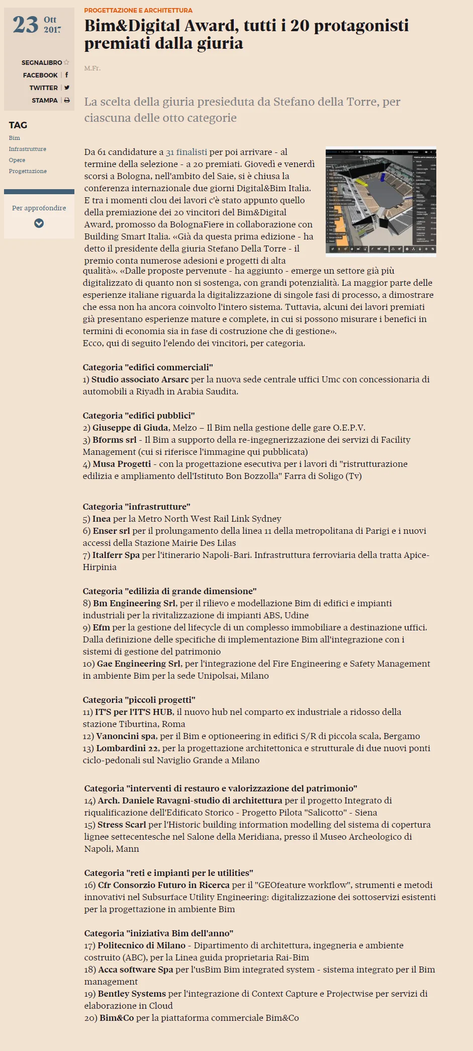 Bim&Digital Award http://www.ediliziaeterritorio.ilsole24ore.com/art/progettazione-e-architettura/2017-10-20/bimdigital-award-tutti-20-premiati-giuria-162837.php?uuid=AEFA6tsC&refresh_ce=1 BForms - Asset & Engineering ManagementOctober 25, 2017 Facebook0 LinkedIn0 0 Likes